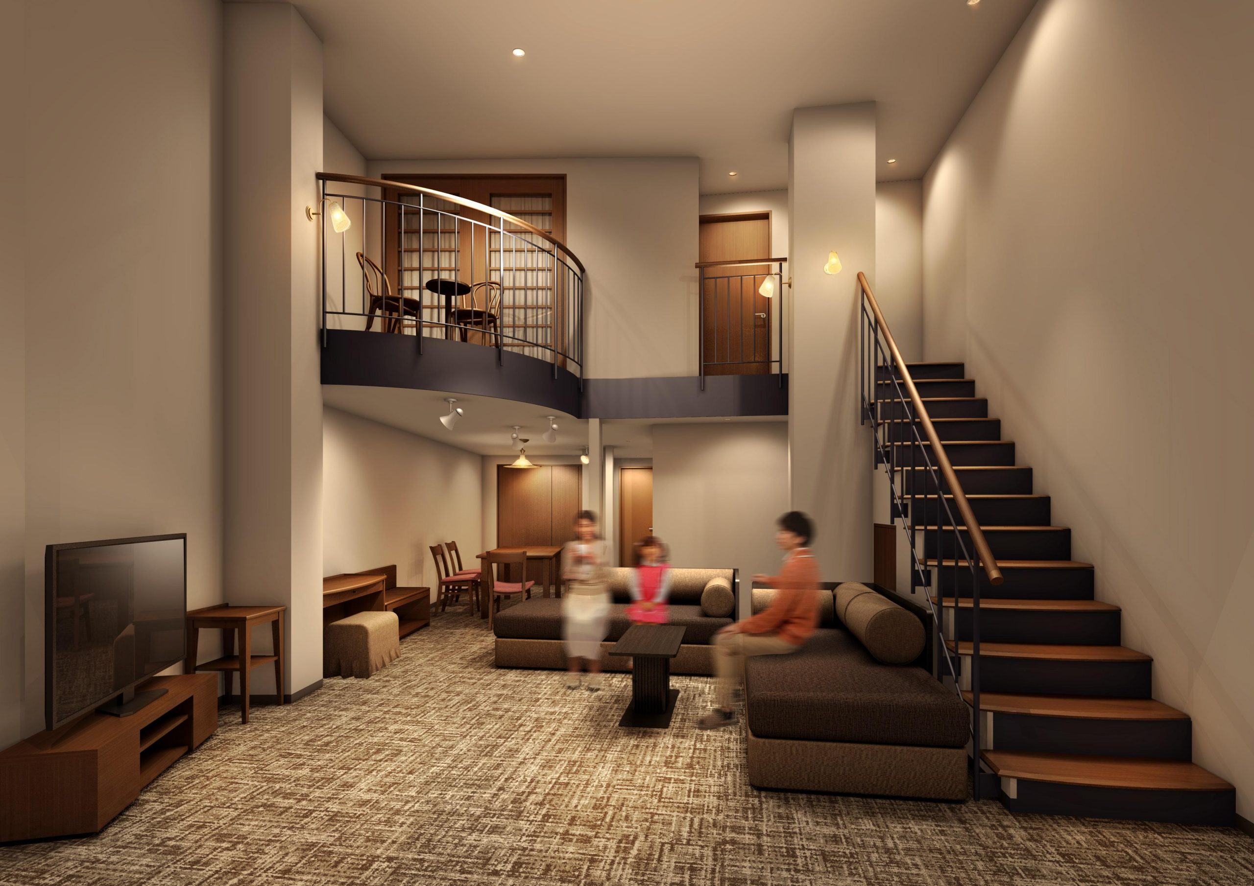 お部屋内に階段を配した二階層のメゾネットタイプ客室がリニューアルし、より快適な空間へと生まれ変わります。