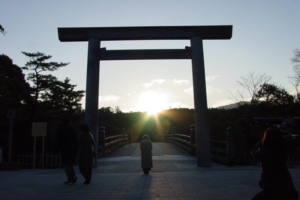 冬至を中心として前後1ヶ月、宇治橋の大鳥居からは美しい日の出を望むことができます。ご参拝される際、わんちゃんは大鳥居(宇治橋)より中に入れませんのでご注意を。混雑が予想されますので、わんちゃんをお連れの際はマナーをお守りください。