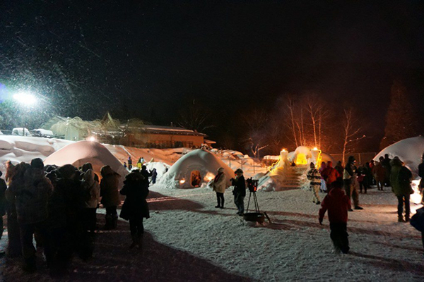 大人が充分に入れるものまで大小様々なかまくらが点在。「こたつかまくら」「かまくらバー」ほか、イベントかまくらも多数!