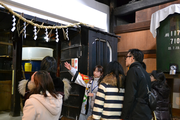 古い町並み周辺6軒の造り酒屋が週交代で酒屋を公開、ガイドが蔵の中を案内してくれます。
